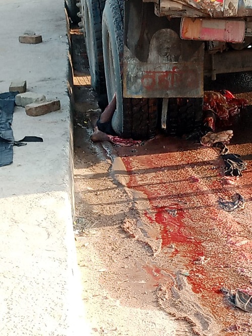कानपुर नगर:घाटमपुर कानपुर सागर हाइवे पर बिधनू रमईपुर के बीच दूध कारोबारी अपने लोडर का टायर पंचर हों जानें के कारण टायर बदल रहा था तभी मोरंग लदे ट्रक ने कुचल दिया जो कि पच्चीस मीटर तक दूध कारोबारी को घसीटता हुआ चला गया भीड़ के दौडाने पर चालक ने ट्रक की चाभी निकाल कर भाग गया जानकारी के अनुसार फतेहपुर जनपद निवासी जहानाबाद क्षेत्र के बुढ़वा गांव निवासी ३० वर्षीय कुलदीप प्रजापति दूध का व्यापार करतें थे सुबह अपने निजी लोडर पर दूध लाद कर नौबस्ता मंडी जा रहें थे रमईपुर के यूनियन बैंक शाखा के पास लोडर का टायर पंचर हो गया इस पर वह कानपुर सागर हाइवे किनारे लोडर को खड़ा कर के टायर बदलने लगे इसी बीच घाटमपुर की ओर से आ रहे मौरंग लदे ट्रक ने कुलदीप को कुचल दिया जिससे उसकी मौके पर मौत हो गई
