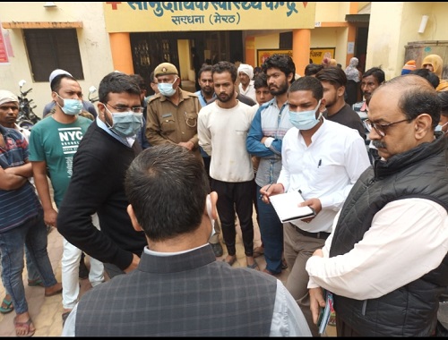 सरधना :मौहल्ला मंडी चामरान में लोगो के बीमार होने के दृष्टिगत आज जिलाधिकारी दीपक मीणा द्वारा मौके पर पहुंच कर सरधना सामुदायिक स्वास्थ्य केन्द्र एवं संबंधित मौहल्ला मंडी चामरान का निरीक्षण कर जायजा लिया गया। जिलाधिकारी द्वारा सरधना सामुदायिक स्वास्थ्य केन्द्र में मरीजो को दिये जा रहे उपचार के संबंध में बीमार मरीजो के परिजनो से वार्ता कर मौके पर उपस्थित मुख्य चिकित्सा अधिकारी को निर्देशित किया गया कि स्वास्थ्य केन्द्र में उपस्थित मरीजो का बेहतर एवं गुणवत्तापरक उपचार सुनिश्चित किया जाये तथा लगातार स्वास्थ्य टीमो पर निगरानी रखते हुये समग्र कार्यवाही सुनिश्चित करे।