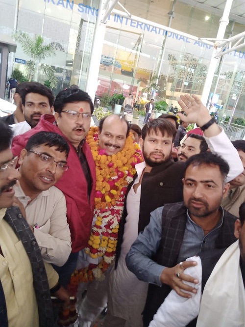 एयरपोर्ट से लेकर प्रदेश कार्यालय तक जगह जगह फूल मालाओं से स्वागत