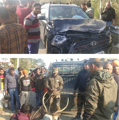 स्थानीय लोगों ने इसकी सूचना पुलिस व वन विभाग को दी सूचना पाकर वन विभाग की टीम मौके पर पहुंची और उस बारासिंघा हिरण को उठवाकर जिला चिकित्सालय पहुंचाया गया हरिद्वार वन दरोगा विजेंद्र कुमार ने बताया कि हिरण सड़क को क्रॉस कर रहा था अचानक सामने गाड़ी आ गई जिससे यह हादसा हुआ है वही हिरण के पिछले पैर टूट गए हैं जिससे उसको चिकित्सालय भिजवाया गया है वन विभाग की टीम में शामिल विजेंद्र कुमार (वन दरोगा) राहुल कुमार अंकित कुमार विक्की कुमार आदि मौजूद रहे!