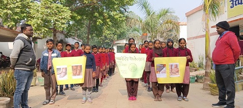 जागरूकता अभियान के क्रम में विद्यालय की वरिष्ठ शिक्षिका राठौर शशि देवी ने फाइलेरिया रोग सम्बंधी दवा के सेवन करने व औरों को प्रेरित करने की शपथ दिलाई।शिक्षक शिवम केसरवानी,आशीष श्रीवास्तव व राजेश शर्मा की अगुआई में फाइलेरिया सम्बंधी जानकारी देने के पश्चात कक्षा छः, सात व आठ के बच्चों के मध्य चित्रकला व निबंध लेखन व वाद विवाद की प्रतियोगता का आयोजन कर जागरूक किया गया।इस दौरान विद्यालय के प्रधानाध्यापक वीरेंद्र शंकर, शिक्षक रामप्रसाद,योगेंद्र,अनूप,राजकुमार, पूजा,सुनीता आदि मौजूद रहे।
