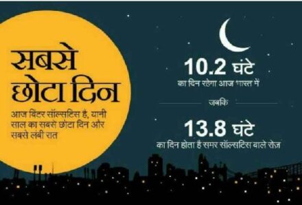 जबलपुर। खगोलीय घटनाक्रम के चलते आज 22 दिसंबर गुरुवार साल का सबसे छोटा दिन रहेगा। 24 घंटे में सिर्फ 10 घंटे 41 मिनट तक ही रोशनी रहेगी और 13 घंटे 19 मिनट रात होगी। खगोल शास्त्रियों के अनुसार सूर्य के चारों तरफ चक्कर लगाने के दौरान आज 22 दिसंबर को सूर्य मकर रेखा पर लंबवत होगा। इससे धरती के उत्तरी गोलार्द्ध में सबसे छोटा दिन और सबसे बड़ी रात होगी। बात यदि मध्य भारत की करें तो यहां सूर्योदय 7.05 बजे पर होगा। सूर्यास्त शाम को 5.46 पर होगा।