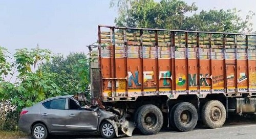 सड़क हादसे में कोहरे का जबरदस्त कहर ट्रक में कार घुसने के बाद दो और कारो ने मारी टक्कर तीन की दर्दनाक मौत