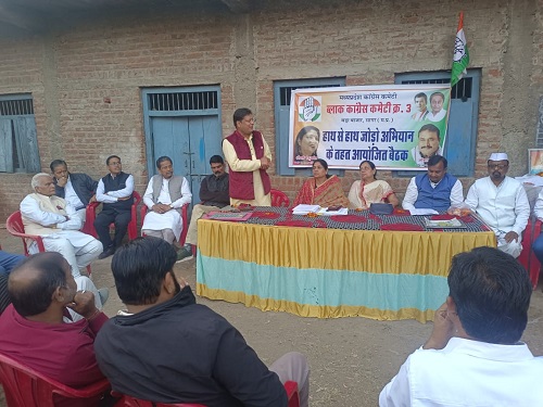 प्रदेश कांग्रेस सचिव सुरेंद्र चौबे ने सभी से इस अभियान में जुटने का आव्हान किया ।कार्यक्रम का संचालन सेवाद्ल के वरिष्ठ संगठक राजाराम सरवैया ने किया। बैठक को कांग्रेस के वरिष्ठ नेता पुरषोत्तम मुन्ना चौबे,,सेवादल अध्यक्ष सिंटू कटारे ,चक्रेश सिघई ने भी सम्बोधित किया। बैठक में प्रमुख रूप से पार्षद नीलोफर चमन, गोवर्धन रैकवार, ब्रजेन्द्र नगरिया,मनोज सोनी,शरद पुरोहित,हराज रजक,नीलू दीवान द्वारका चौधरी,मुन्नालाल,गोरेलाल, प्रदीप पांडे, ठाकुर दास कोरी,प्रदीप कुल्फी ,रवि सोनी,मीरा अहिरवार,बिल्ली रजक, शालू खां सचिन यादव सहित अनेक लोग उपस्थित रहे।