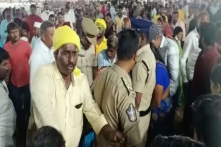 गुंटूर: आंध्र प्रदेश के गुंटूर में रविवार को तेलुगु देशम पार्टी के प्रमुख चंद्रबाबू नायडू की जनसभा में भगदड़ मचने से तीन लोगों की मौत हो गई और कई अन्य घायल हो गए.