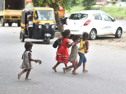 पॉलिटेक्निक चौराहे पर भीख मांगकर खाने वाली बच्ची को कार से टक्कर लगने के बाद टायर में फसी बच्ची