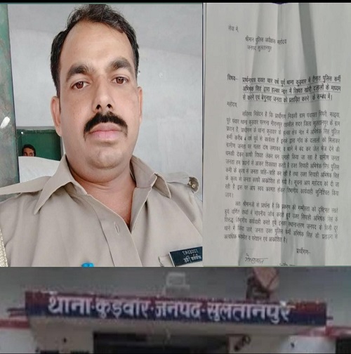 सुलतानपुर: जिले के कुडवार थाने पर तैनात सिपाही अभिषेक सिंह के चलते लोगो से उठ रहा है पुलिस से इकबाल,कुड़वार थाने के एक ही हल्के में लगभग चार वर्षों से तैनात है सिपाही अभिषेक सिंह आरोप के मुताबिक सिपाही अभिषेक सिंह द्वारा हल्के में धन उगाही करने से परेशान जनता और स्थानीय प्रधान सिपाही अभिषेक सिंह के खिलाफ मुखर हुए ग्राम प्रधान एसपी सोमेन बर्मा को लिखित तहरीर देकर उठाई स्थानांतरण के कार्यवाही की मांग मुख्यमंत्री योगी आदित्यनाथ की ट्रांसफर नीतियों पर सिपाही अभिषेक सिंह लगा रहे पलीता ग्राम प्रधान की लिखित तहरीर कप्तान सहाब को देने के बाद से ही थाने की पुलिस जबरन बना रही दबाव ऐसे में सवाल उठता है कि क्या पुलिस अधीक्षक सिपाही अभिषेक सिंह के खिलाफ करेंगे कार्यवाही ये तो आने वाला समय तय करेगा या फिर पुलिसिया साख को बचाने की करेंगे होगी तैयारी या फिर सिपाही अभिषेक सिंह का स्थानांतरण कर ग्राम प्रधान और क्षेत्र के लोगों के साथ करेंगे न्याय