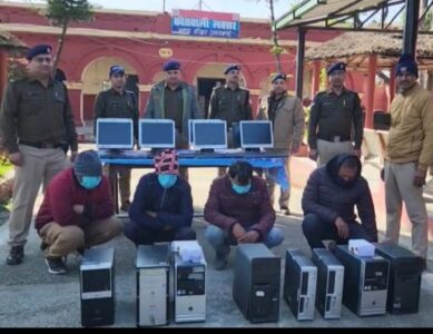 सूचना के आधार पर कुल 04 अभियुक्तों को भारी मात्रा में इलैक्ट्रोनिक सामान कम्प्यूटर, सीपीयू, प्रिंटर, नकदी, घटना में इस्तेमाल किए जाने वाले कई मोबाइल फोन तथा अन्य दस्तावेज आदि के साथ दबोचा।