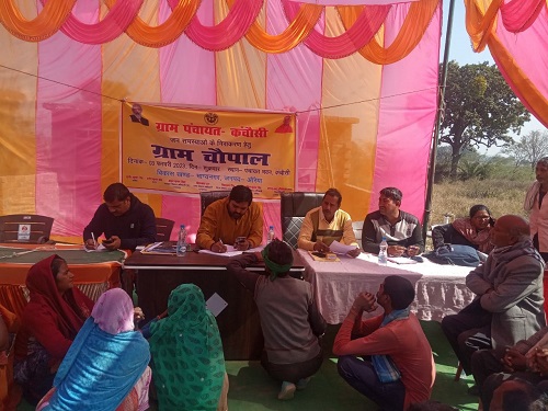 कंचौसी: भाग्यनगर विकासखंड के ग्राम पंचायत कंचौसी के पंचायत भवन में प्रधान प्रमोद चौबे एवं ग्राम पंचायत अधिकारी सुधीर पटेल व ब्लाक से आये अन्य अधिकारियों की मौजूदगी में विकास कार्यों को लेकर ग्राम सभा की खुली बैठक की गई। बैठक में आए हुए लोगों ने ग्राम पंचायत अधिकारी के सामने ग्राम सभा की साफ सफाई, पात्रों को आवास, मनरेगा कार्य, नाली निर्माण,पेंशन योजना आदि जैसी समस्याओं को रखा गया।ग्राम पंचायत अधिकारी के द्वारा जनता की समस्याओं को अपने प्रस्ताव में नोट कर आश्वासन दिया और कहा जल्द से जल्द इन समस्याओं का समाधान होगा।