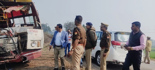 शाहजहांपुर: थाना खुटार शाहजहांपुर से गौरीफंटा जा रही रोडवेज बस थाना क्षेत्र के गांव लक्ष्मीपुर की पुलिया के पास सामने से तेज रफ्तार में आ रहे ट्रक से टक्कर हो गई जिससे बस में सवार दर्जनों यात्री गंभीर रूप से घायल हो गए। हादसे की खबर मिलते ही आनन फानन में कई 108 एंबुलेंस की गाड़ियां मौके पर पहुंची और पुलिस ने सभी घायलों को खुटार के सरकारी अस्पताल में भर्ती कराया जिसमें बस चालक व परिचालक एवं दो यात्रियों की हालत गंभीर होने पर उन्हें उपचार के लिए जिला अस्पताल रेफर कर दिया गया सुबह इतना बड़ा हादसा होने की खबर मिलते ही हड़कंप मच गया।
