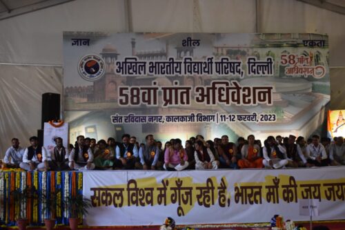 नई दिल्ली: अखिल भारतीय विद्यार्थी परिषद दिल्ली का दो-दिवसीय प्रदेश अधिवेशन रविवार को शेख सराय में संपन्न हुआ। इस अधिवेशन हेतु शेख सराय में संत रविदास के नाम से एक संपूर्ण नगर बसाया गया जिसमें विभिन्न दर्शनीय पंडालों एव अस्थायी भवनों का निर्माण किया गया था।मुख्य सभागार का नाम गुरु तेगबहादुर के नाम पर रखा गया है। अधिवेशन में प्रदर्शनी भवन का भी निर्माण किया गया था जिसका नाम वीरगति प्राप्त लेफ्टिनेंट विवेक सजवान प्रदर्शनी भवन के नाम पर रखा गया था। इस प्रदर्शनी में अभाविप दिल्ली के वर्ष भर के शिक्षा एवं समाज से जुड़े कार्यों की झांकी प्रदर्शित की गई ।इस अधिवेशन में डीयू, जे. एन. यू. ,जामिया तथा संस्कृत विश्वविद्यालय से सैकड़ों छात्रों की उपस्थिति रही। अधिवेशन मे शिक्षा , महिला सुरक्षा एवं पर्यावरण विषय पर तीन प्रस्ताव छात्रों के सुझाव से पारित किये गए जिन पर वर्ष भर अभाविप कार्य करेगी।