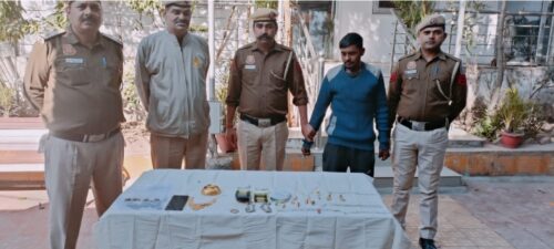 नई दिल्ली: दिल्ली के दक्षिण पूर्व जिले के थाना जामिया नगर के स्टाफ ने अपराधी को गिरफ्तार किया है। गिरफ्तार आरोपी की पहचान शाहनवाज निवासी जामिया नगर उम्र- 25 साल के रूप में हुई है। उसके पास से एक मोबाइल फोन, करीब 5 लाख मूल्य के सोने-चांदी के जेवरात और 5420/- रुपये की नकद बरामद किए है।
