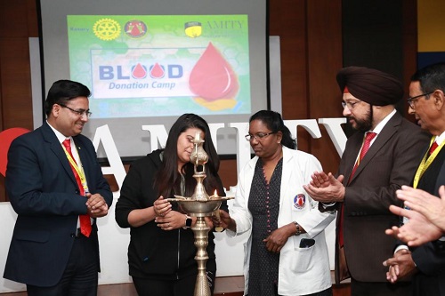 नोएडा: नॉलेज पार्क स्थित एमिटी विश्वविद्यालय ने रोटरी क्लब के सहयोग से विश्विद्यालय परिसर में 15 फरबरी को एक दिवसीय रक्तदान शिविर का आयोजन किया।इस शिविर का आयोजन एमिटी एजुकेशन ग्रुप के संस्थापक अध्यक्ष, डॉ अशोक के चौहान और चांसलर डॉ अतुल चौहान के मार्गदर्शन में किया गया। एमिटी एजुकेशन ग्रुप के ट्रस्टी श्री अजय चौहान ने इस कार्यक्रम के आयोजन में बहुत महत्वपूर्ण भूमिका निभाई।शिविर की शुरुआत एमिटी विश्वविद्यालय के महानिदेशक प्रो. (डॉ.) अजय राणा ने अपना रक्तदान कर के किया।