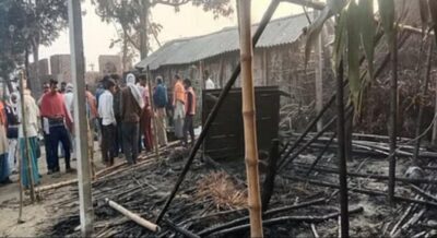 अलाव की चिंगारी से झोपड़ी में लगी आग, चपेट में आए मवेशी