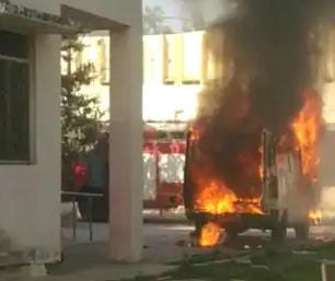 जिला अस्पताल में खड़ी एंबुलेंस में लगी आग, फायर ब्रिगेड ने पाया आग पर काबू