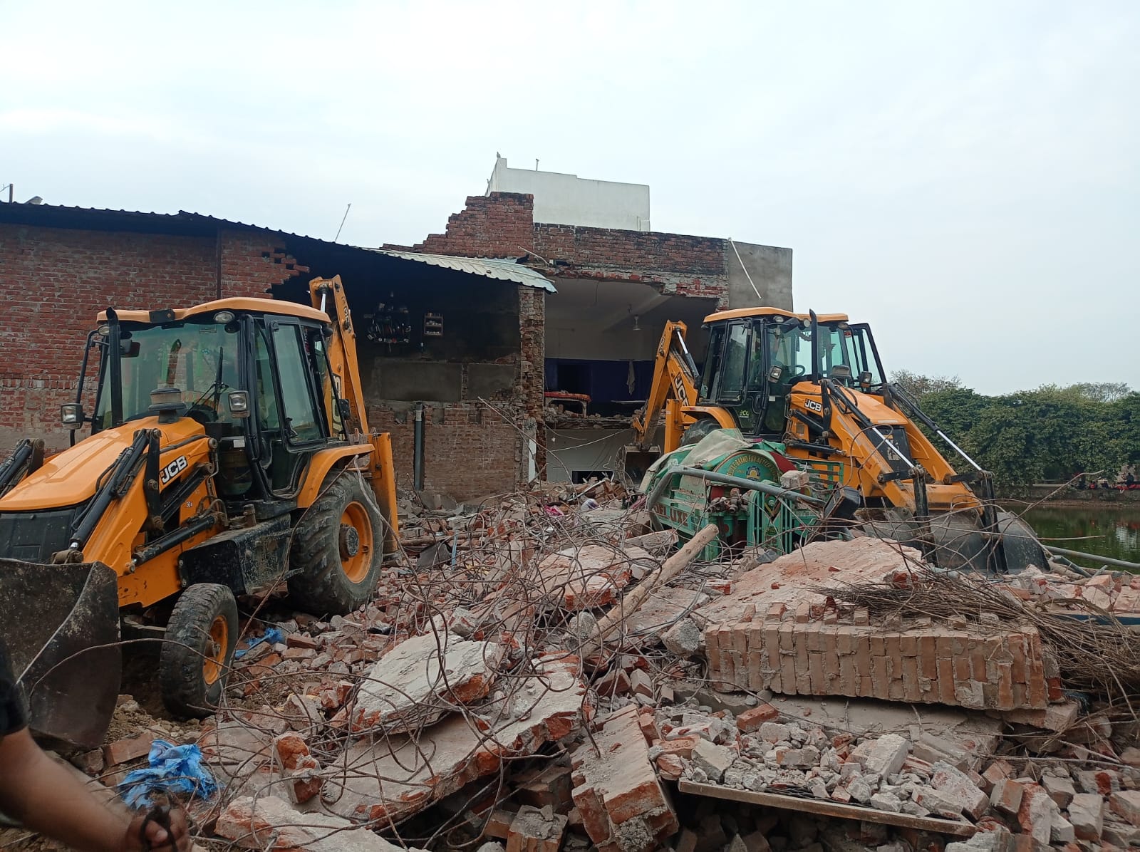 जिसके घर पर कार्यवाही करते हुए प्रशासन द्वारा अवैध निर्माण को ध्वस्त किया जा रहा है। पुलिस अधीक्षक राजेश कुमार सिंह द्वारा बताया गया पूर्वी उत्तर प्रदेश के शातिर अपराधी माफिया अतीक के संबंध रखने वाले थाना खखरेरू और रहमतपुर गांव के मोहम्मद अतहर के दो लड़के हैं वह भी अपराधी प्रवृत्ति के हैं। जिनके ऊपर ढेर सारे मुकदमे पंजीकृत हैं मोहम्मद अतहर स्वयं एक हिस्ट्रीशीटर था जिसके ऊपर 30 मुकदमे थे।जिसकी कुछ दिन पहले मृत्यु हो चुकी है। जिसका अतीक के यहां आना जाना था इनके द्वारा गुंडागर्दी के बल पर तालाब की जमीन पर अवैध मकान बनाया गया था। जिसको पुलिस प्रशासन एसडीएम की मौजूदगी में अवैध निर्माण को गिराने का काम प्रशासन द्वारा किया जा रहा है।