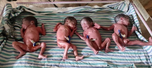 देवरिया जिले की एक महिला ने चार बच्चों को जन्म दिया है। सभी बच्चें स्वस्थ बताए जा रहे है। मिली जानकारी के मुताबिक,कोतवाली थाना क्षेत्र के अंतर्गत कुसमा बेलवा निवासी सुमन यादव पत्नी गोरखनाथ उर्फ छोटे यादव ने शनिवार को एक साथ चार बच्चों को जन्म दिया जिनमे तीन बच्चियां,एवं एक बच्चा है। चारों बच्चों को जिला अस्पताल के चिल्ड्रेन वार्ड में रखा गया है। महिला एक निजी अस्पताल में भर्ती है। जहां उसकी हालत ठीक बताई जा रही है।