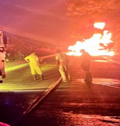 झारखण्ड के हजारीबाग जिले में चौपारण थाना क्षेत्र के हथिया बाबा के दनुवा घाटी में सरसों तेल से लदे ट्रक में भीषण आग लग गई।इस आग में ट्रक जलकर खाक हो गया, गनीमत रही कि पुलिस की टीम ने चालक को सुरक्षित निकाल लिया।इस हादसे में किसी प्रकार की जनहानि नहीं हुई।अगलगी की इस घटना को लेकर बताया जा रहा है कि चौपारण थाना क्षेत्र में हथिया बाबा के दनुवा घाटी के पास एनएच 19 पर शुक्रवार अहले सुबह लगभग साढ़े तीन बजे सरसों तेल से लदे एक ट्रक में भीषण आग लग गयी।पुलिस प्रशासन और दमकल गाड़ी की मदद से आग पर काबू पाया गया। शॉर्ट सर्किट से ट्रक में आग लगने की बात बताई जा रही है।इस घटना को लेकर चौपारण थाना प्रभारी शंभूनंद ईश्वर ने जानकारी देते हुए बताया कि दनुवा घाटी में सरसों तेल लदे ट्रक संख्या आरजे 02जीए 9983 में आग लग गयी। इससे तेल सहित ट्रक पूरी तरह से जलकर खाक हो गया।वहीं ट्रक चालक अख्तर को सुरक्षित वहां से बाहर निकाल लिया गया।यह ट्रक अलवर राजस्थान से कोलकाता जा रही थी।