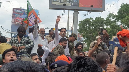 मेरठ: कंकरखेड़ा थाने पर मंगलवार सुबह भाजपा कार्यकर्ताओं ने जमकर हंगामा किया। इस दौरान भाजपा कार्यकर्ताओं व कार्यवाहक थाना प्रभारी की जमकर तीखी नोकझोंक हो गई। दरअसल पुलिस ने रंगदारी के मामले में एक युवक को उठाया था। भाजपा कार्यकर्ताओं ने पुलिस पर दबिश के नाम पर युवक के घर पर तोड़फोड़, अभद्रता व मारपीट कार्रवाई करने का आरोप लगाया। जिसके बाद पुलिस ने युवक को छोड़ दिया।