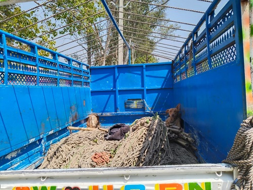 पशु प्रेमी विकेन्द्र शर्मा की सूचना पर जंगली सुवरों का वध करते वन विभाग की टीम ने पाँच को पकड़ा
