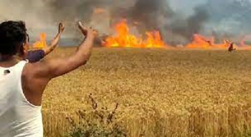 सोनभद्र: बेमौसम बारिश के बाद अब बिजली के जर्जर तार किसानों पर कहर ढा रहे हैं।ग्राम पंचायत देवाटन के टोला लौगांबाध निवासी औलाद मुहम्मद ने अपने पांच बीघे खेत में गेहूं, चना, मसूर की खेती की थी।फसल कटाई के बाद उसे अपने दरवाजे के सामने बने खलिहान में रखा था। गुरुवार की सुबह करीब 5.30 बजे ऊपर से गुजरा एलटी तार अचानक टूटकर फसल पर गिर गया। तार में प्रवाहित करंट से खलिहान में आग लग गई।