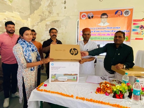 मियाँगंज उन्नाव: उत्तर प्रदेश शाषन के निर्देशानुसार चिकित्सा प्रभारी डॉ राजेश कुमार वर्मा के द्वारा सामुदायिक स्वास्थ्य केन्द्र मियाँगंज सभागार में आयोजित लेपटॉप व प्रिन्टर वितरण कार्यक्रम में मुख्य अतिथि के रूप में पहुँचे विधायक सफीपुर बम्बा लाल दिवाकर ने समस्त सोलह हैल्थ वेलनेस सेंटर के सी०एच०ओ को लैपटॉप और प्रिंटर का निःशुल्क वितरण करते हुवे कहा की उत्तर प्रदेश सरकार के यशश्वी मुख्यमंत्री योगी आदित्यनाथ लगातार प्रदेश को खुशहाली की ओर ले जाने के लिये काम कर रहे स्वास्थ्य सम्बन्धित अनेक जनकल्याणकारी योजनाओं से आम जनमानस को लाभ पहुँच रहा है । इस अवसर पर चिकित्सा प्रभारी डॉ राजेश कुमार वर्मा,महेन्द्र कुमार गुप्ता प्रांतीय मंत्री दोसर वैश्य महासमिति,प्रवीण कुमार रावत अध्यक्ष प्रधान संघ,सरोज सैनी पूर्व प्रधान,अखिलेश तिवारी सहित स्वास्थ्य कर्मी उपस्थित रहें ।