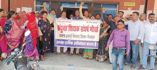 बिहार: सरकार द्वारा 10 अप्रैल 2023 को अधिसूचित “बिहार राज्य विद्यालय अध्यापक ( नियुक्ति, स्थानांतरण, अनुशासनिक कार्रवाई एवं सेवा शर्त ) नियमावली- 2023” में राज्य सरकार ने पूर्व से नियोजित एवं कार्यरत शिक्षकों को राज्य कर्मी का दर्जा नहीं दे उन्हें नियोजन इकाइयों के अंदर ही छोड़कर शिक्षकों के साथ बहुत बड़ा धोखा किया है lसरकार के इस धोखे के विरुद्ध राज्य में गठित “संयुक्त शिक्षक संघर्ष मोर्चा” के आह्वान पर शिवहर प्रखंड के सभी शिक्षक प्रखंड कार्यालय शिवहर के समक्ष सरकार के वादाखिलाफी के विरुद्ध विरोध प्रदर्शन कर नियमावली की प्रतियां जलाई तथा सरकार के खिलाफ नारे लगाए l