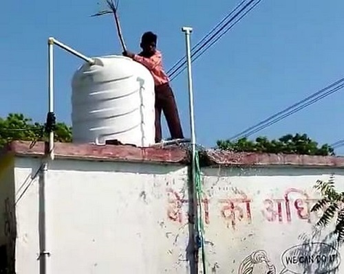 उज्जैन:जिला मुख्यालय से 30 किलोमीटर दूर स्थित फतेहाबाद में बच्चे स्कूल में पढ़ाई करने पहुंचे थे।वहां उनके प्राचार्य और अध्यापकों ने उन्हें छत पर चढ़ा दिया और टंकी साफ करने के निर्देश दे दिए। बच्चे क्या कर सकते थे, अध्यापकों के आदेश पर टंकी साफ करते दिखाई दिए। इस घटना का किसी ने वीडियो बना लिया और अब यह वायरल हो गया है।यह वीडियो फतेहाबाद के पास ग्राम एरवास के सरकारी हाईस्कूल का है।