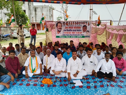 शिवहर:जिले के किसान मैदान में ज्यादातर भारत सत्याग्रह के तत्वधान में कांग्रेस पार्टी का एक दिवसीय धरना प्रदर्शन का आयोजन पूर्व विधायक मनोज कुमार सिंह की अध्यक्षता में किया गया है।कांग्रेस पार्टी के जिला अध्यक्ष मोहम्मद असद ,पार्टी प्रवक्ता मुकेश कुमार सिंह ,वशिष्ठ राउत चंद्रवंशी, मोहम्मद सद्दाम हुसैन ,अफरोज आलम आईटी सेल के जिला प्रभारी, मोहम्मद आकिब हुसैन ,मोहम्मद तौकीर अहमद, मोहम्मद मुस्ताक ,प्रमोद राय, विमल पांडे सहित कांग्रेस पार्टी के पदाधिकारी एवं कार्यकर्ता मौजूद हैं।