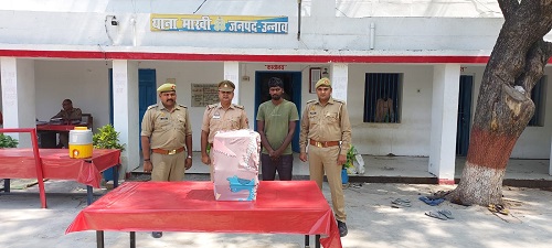 आज दिनांक 08.05.2023 को मुकदमा उपरोक्त में उ0नि0 श्री भगत सिंह व का0 जयपाल सिंह द्वारा अभियुक्त कल्याण पुत्र स्व0 मधुप्रसाद निवासी फतेहउल्ला नगर थाना कोतवाली सदर जनपद उन्नाव उम्र करीब 26 वर्ष को चोरी की 04 अदद अंग्रेजी शराब की पेटियों के साथ मेथीटीकुर रेलवे स्टेशन के पश्चिम में स्थित झाडियों के पास से गिरफ्तार किया गया। बरामदगी के आधार पर मुकदमा उपरोक्त में धारा 411 भा0दं0वि0 की वृद्धि की गई।
