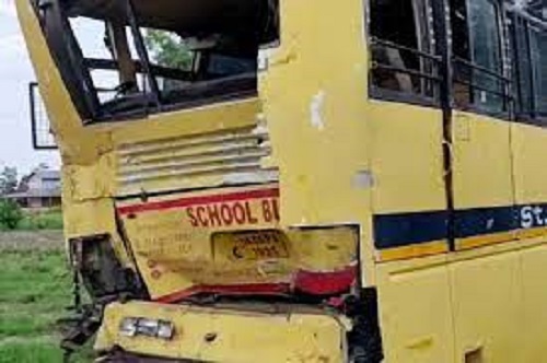 सोनभद्र: दुद्धी नगर में संचालित सेंट मेरी स्कूल की बस सुबह 7 बजे बच्चों को उनके घरों से लेकर स्कूल जा रही थी। जाबर पेट्रोल पम्प के समीप एक बच्चे को लेने के लिए उसके घर के पास सड़क किनारे अपने साइड में बस रुकी थी। इसी दौरान पीछे से आ रही एक ट्रक ने अनियंत्रित होकर स्कूल के बस में टक्कर मार दी,एकाएक टक्कर से डरे सहमे बच्चों में चीख पुकार मच गई।