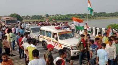 आर्मी जवान के पार्थिव शव को प्राइवेट एंबुलेंस से लाने पर आक्रोशित ग्रामीणों ने किया रजवाड़ी पुल पर चक्काजाम