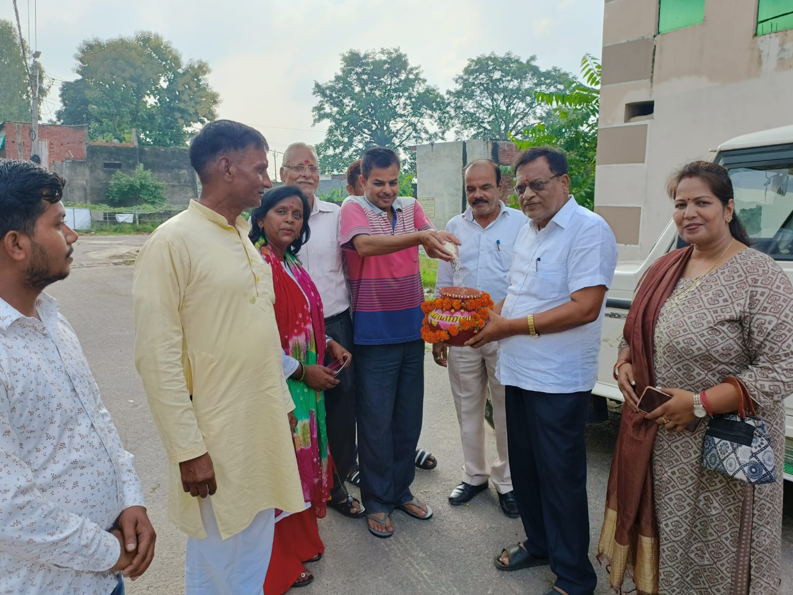 बहराइच भाजपा अध्यक्ष श्याम करन टेकरीवाल ने घर घर मांगी एक मुट्ठी अक्षत व मिट्टी
