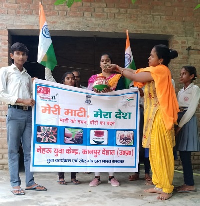 राष्ट्रीय जजमेंट रूरा कानपुर देहात_ मेरी माटी मेरा देश अभियान के हर घर से मिट्टी एकत्र की गई। नेहरू युवा केंद्र की जिला युवा अधिकारी प्रिया ने कहा कि आजादी के अमृत महोत्सव के अंतर्गत “मेरी माटी मेरा देश” कार्यक्रम के तहत अभियान चला कर अमृत कलश में घर-घर से एकत्र की जा रही है मिट्टी को अमृत कलर में भरकर जिले में भेजी जाएगी वहा से दिल्ली भेजी जाएगी।