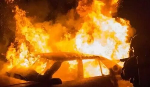 आग से झुलस कर एक व्यक्ति घायल, तीन गाड़ियां जलकर खाक