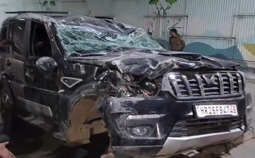 गुरुग्राम में बाइक से टकराने के बाद पलटी एसयूवी, पांच लोग घायल