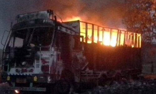 नक्सलियों ने सड़क निर्माण कार्य में लगे टैंकर और मशीन में आग लगाई