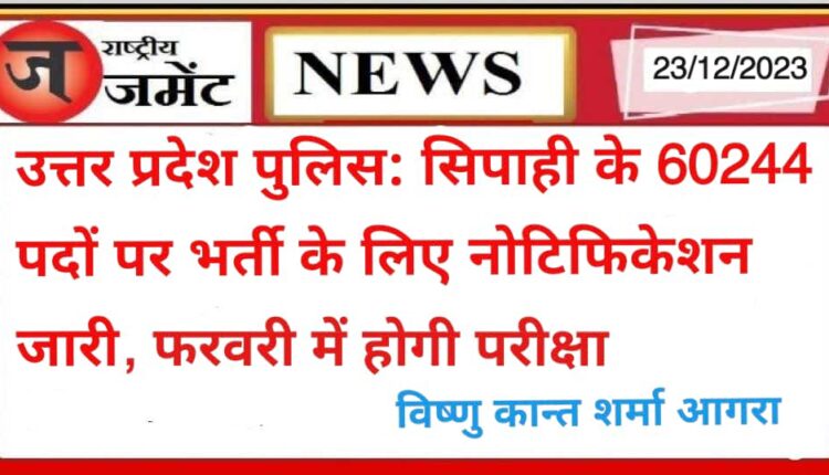 उत्तर प्रदेश पुलिस: सिपाही के 60244 पदों पर भर्ती के लिए नोटिफिकेशन जारी