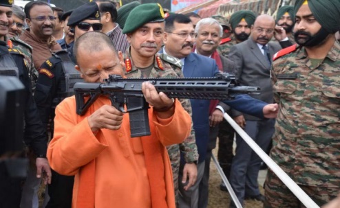 मुख्यमंत्री योगी आदित्यनाथ ने शुक्रवार को सेना के मध्य कमान (सूर्या कमान) में आयोजित तीन दिवसीय नो योर आर्मी समारोह की शुरुआत की। इस दौरान सिख रेजीमेंट के जवानों ने साहसिक पंजाबी धुनों पर अपने पारंपरिक शौर्य कला का शानदार प्रदर्शन किया। इस अवसर पर मुख्यमंत्री ने यहां आयोजित प्रदर्शनी का अवलोकन किया, जिसमें सेना के साजो-सामान के साथ ही अत्याधुनिक हथियारों का प्रदर्शन किया गया। एक बयान के अनुसार मुख्यमंत्री ने सेना के अधिकारियों से विभिन्न हथियारों और सैन्य सामानों के बारे में जानकारी भी ली। मुख्यमंत्री ने समारोह को संबोधित करते हुए कहा कि भारतीय सेना देश के 140 करोड़ जनता की शक्ति और साहस का प्रतीक है।