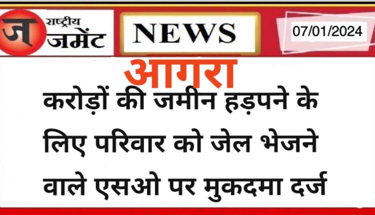 आगरा में करोड़ों की जमीन पर कब्जे के लिए फर्जी मुकदमे लिख एक परिवार को जेल भेजने वाले तत्कालीन एसओ को निलंबित किया गया था। अब इसी मामले में कमिश्नर के आदेश पर रविवार को तत्कालीन एसओ जितेंद्र कुमार, बिल्डर कमल चौधरी-उनके बेटे धीरू चौधरी समेत 18 लोगों के खिलाफ धारा 147, 148 व 149 (एक राय होकर जुटना, बलवा की धारा), 447 (आपराधिक अतिचार), 448 (गृह अतिचार), 120 बी (आपराधिक साजिश), 467 (कूटरचना), 395 (डकैती) और 506 (धमकी) में दर्ज किया गया है। वहीं जमीन से हटाए गए पीड़ित परिवार को फिर से कब्जा दिलाया गया है।