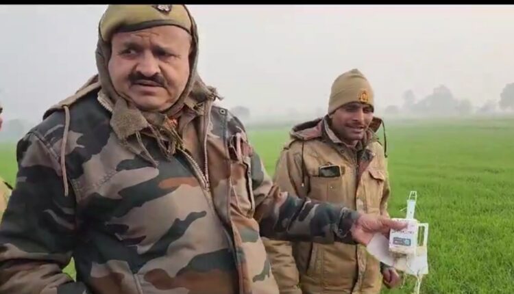 मामला बदायूं के कोतवाली बिसौली क्षेत्र के गांव मुबारकपुर का है। शनिवार दोपहर ग्रामीण रोजाना की तरह खेतों में काम कर रहे थे। अचानक आसमान से एक इलेक्ट्रॉनिक उपकरण नीचे गिर। इसमें लाइट भी जल रही थी। गांव वालों ने बम जाना जिससे भगदड़ मच गई। सूचना पर पुलिस और बिसौली एसडीएम कल्पना जायसवाल मौके पर पहुंचे। पुलिस ने यंत्र को अपने कब्जे में ले लिया है। इस डिवाइस में गुब्बारा बंधा हुआ था और उसमें एक लाल लाइट जल रही थी जिस पर भारत सरकार लिखा हुआ था। पुलिस यंत्र को उठाकर कोतवाली ले आई जहां उसकी जांच पड़ताल की जा रही है। पुलिस का कहना है कि प्राथमिक जांच में यह डिवाइस मौसम विभाग का लग रहा है।
