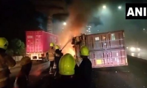 कंटेनर खाली था लेकिन पलटने के बाद इसमें आग लग गई। आग पर काबू पाने में दमकलकर्मियों को करीब एक घंटे का समय लगा। अधिकारी ने बताया कि कंटेनर के अंदर एक जला हुआ शव मिला।