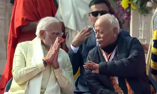 राष्ट्रीय स्वयंसेवक संघ (आरएसएस) प्रमुख मोहन भागवत ने कहा कि राम राज्य आ रहा है और देश में सभी को विवादों से दूर रहना चाहिए और एकजुट रहना चाहिए। उनकी यह टिप्पणी सोमवार, 22 जनवरी को अयोध्या मंदिर में राम लला की नई मूर्ति की प्राण प्रतिष्ठा के बाद आई। उन्होंने अयोध्या में राम लला की मूर्ति के ‘प्राण प्रतिष्ठा’ समारोह के बाद कहा कि राम राज्य आ रहा है और हमें सभी विवादों को दूर करना होगा और छोटे-छोटे मुद्दों पर आपस में लड़ना बंद करना होगा। हमें अहंकार छोड़ना होगा और एकजुट रहना होगा।