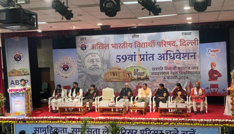 नई दिल्ली: अखिल भारतीय विद्यार्थी परिषद के दिल्ली प्रांत का 59वाँ प्रांत अधिवेशन जेएनयू के छत्रपति शिवाजी नगर के वेद प्रकाश नंदा सभागार में आज संपूर्ण हुआ। इस कार्यक्रम में दिल्ली के अलग- अलग विभागों से 500 से अधिक प्रतिनिधियों ने भाग लिया।