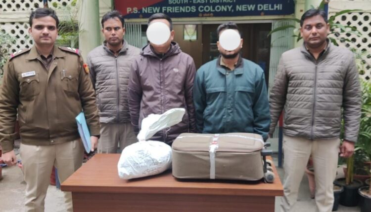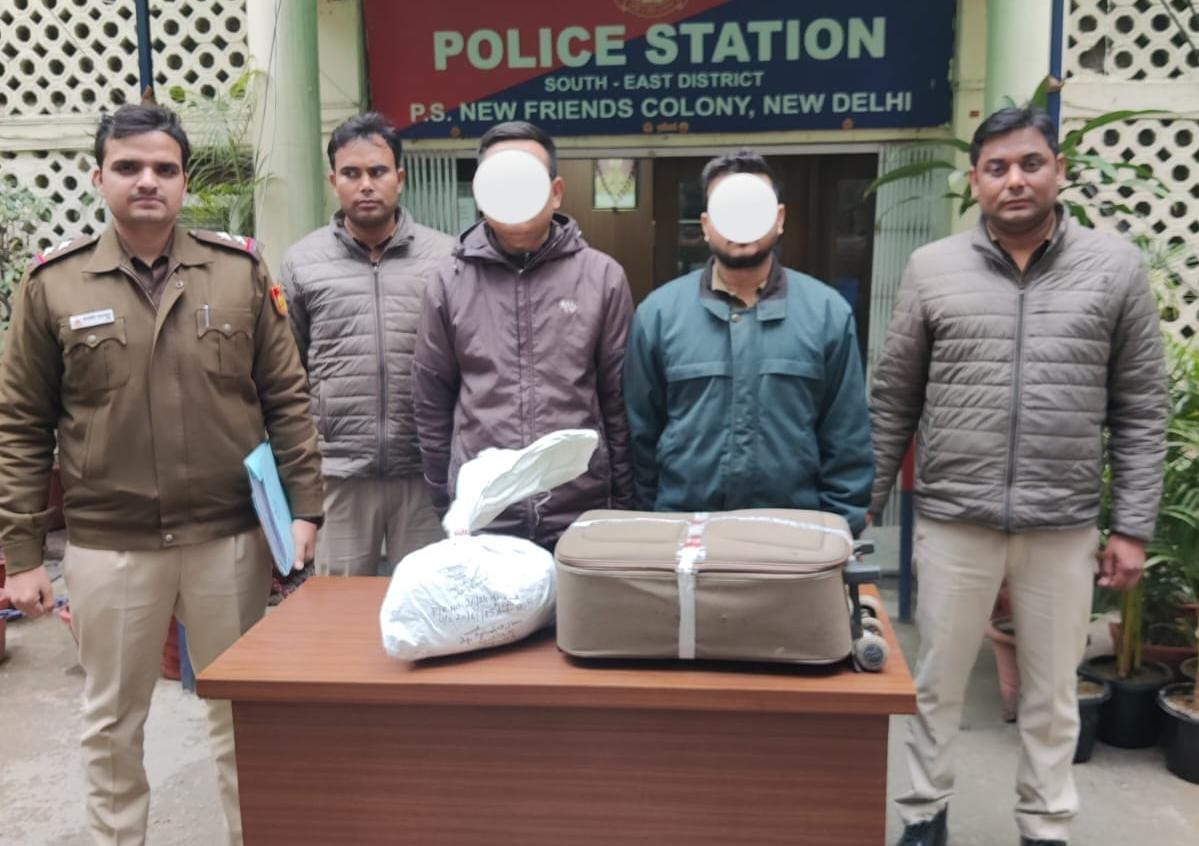 साउथ ईस्ट जिले के डीसीपी राजेश देव ने बताया कि बीते शुक्रवार को गश्त के दौरान बीट स्टाफ ने दो संदिग्ध व्यक्तियों को पकड़ा गया। पकड़े गए तस्करों की पहचान 24 वर्षीय खुंजामयुम निवासी इम्फाल पश्चिम मणिपुर और वासिल खुर्शीद निवासी गोपालगंज, बिहार के रुप में हुई। तलाशी लेने पर दोनों के पास से 3.224 किग्रा गांजा बरामद हुआ। पूछताछ में पता चला कि आरोपी पंजाब के भटिंडा स्थित एक इंजीनियरिंग कॉलेज में पढ़ रहे थे। दोनों 20 दिन पहले गांजा बेचने के लिए दिल्ली आए थे, जिसे खुंजा मणिपुर से लेकर आए थे। दोनों ने गांजा बेचने के लिए तैमूर नगर में कमरा किराए पर लिया था।