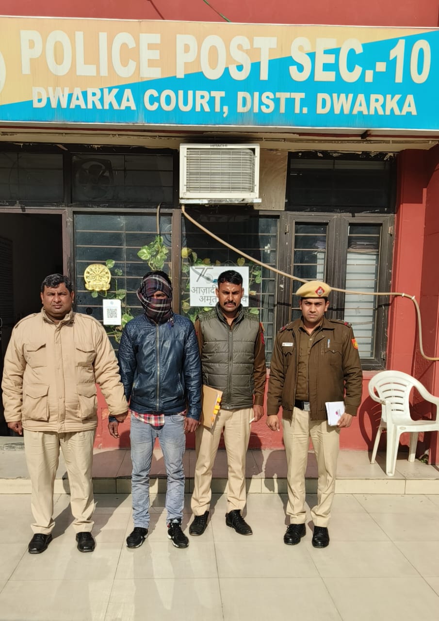 द्वारका जिले के डीसीपी अंकित सिंह ने बताया कि बीते रविवार को गश्त के दौरान जब टीम सेक्टर-10 के पीछे ग्राउंड पर पहुंची। जहां टीम ने एक व्यक्ति को झाड़ियों के पीछे छिपा हुआ देखा और पुलिस को देखकर मौके से भागने लगा, लेकिन टीम ने उस पर काबू पा लिया गया। उसकी तलाशी के दौरान उसके पास से एक देशी पिस्तौल, 2 जिंदा कारतूस बरामद किया गया।