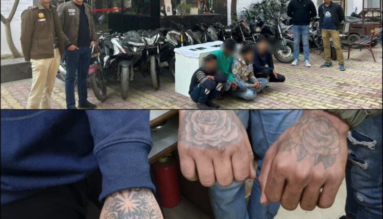 नई दिल्ली: दिल्ली के केशव पुरम थाना पुलिस ने ‘रोज गैंग’ के चार सदस्यों को गिरफ्तार किया है। ये लोग इलाके में दहशत फैलाने के मक्सद से वारदात का वीडियो बनाते थे और सोशल मीडिया पर अपलोड करते थे। इन सभी के हाथ पर गुलाब का टैटू बना हुआ है। पकड़े गए आरोपियों की पहचान 19 वर्षीय निखिल निवासी शास्त्री नगर, 21 वर्षीय रोहित उर्फ कांचू निवासी करोल बाग, 18 वर्षीय दीपक निवासी करोल बाग और 19 वर्षीय आकाश निवासी आनंद पर्वत के रुप में हुई है। इनके पास से चोरी की आठ मोटरसाइकिल और एक बुलेट जिससे वारदात को अंजाम दिया करते थे। बुलेटऔर आठ मोटरसाइकिल बरामद कर ली है। साथ ही उनके पास से तीन मोबाइल भी बरामद किए हैं।