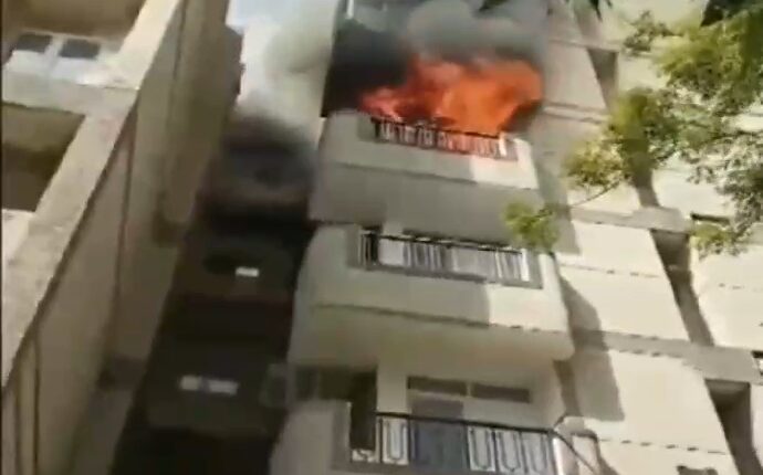 नई दिल्ली: दिल्ली के द्वारका में आज भीषण आग का तांडव देखने को मिला है। द्वारका के सेक्टर 10 में पैसिफिक अपार्टमेंट की चौथी मंजिल में आग लगने से पूरे इलाके में हड़कंप मच गया। आग बढ़ी तो फ्लैट में फंसी दादी-पोती ने जान बचाने के लिए नीचे छलांग लगा दी। गंभीर हालत में 83 वर्षीय जसूरी देवी और इनकी 30 वर्षीय पोती पूजा पंत को नजदीकी आयुष्मान अस्पताल में ले जाया गया, जहां जसूरी देवी को मृत घोषित कर दिया और पूजा की हालत नाजुक बताई जा रही है। दमकल की छह गाड़ियों ने आग पर काबू किया।