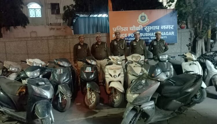नई दिल्ली: दिल्ली के पश्चिम जिले के राजौरी गार्डन थाने के सुभाष नगर चौकी के स्टाफ ने वाहन चोरी के आरोप में आठ को पकड़ा है। उनके पास से बारह स्कूटी बरामद की है। सभी आरोपी नाबालिक है।