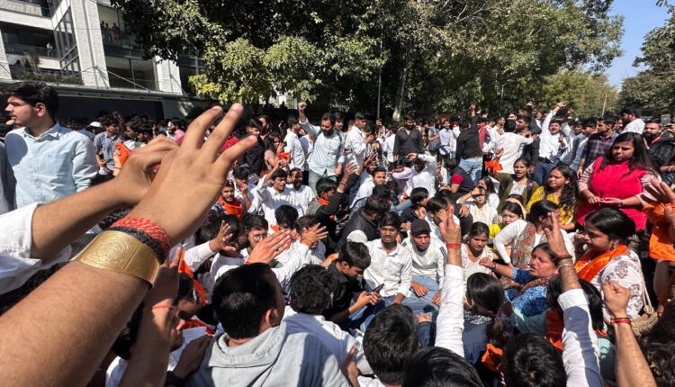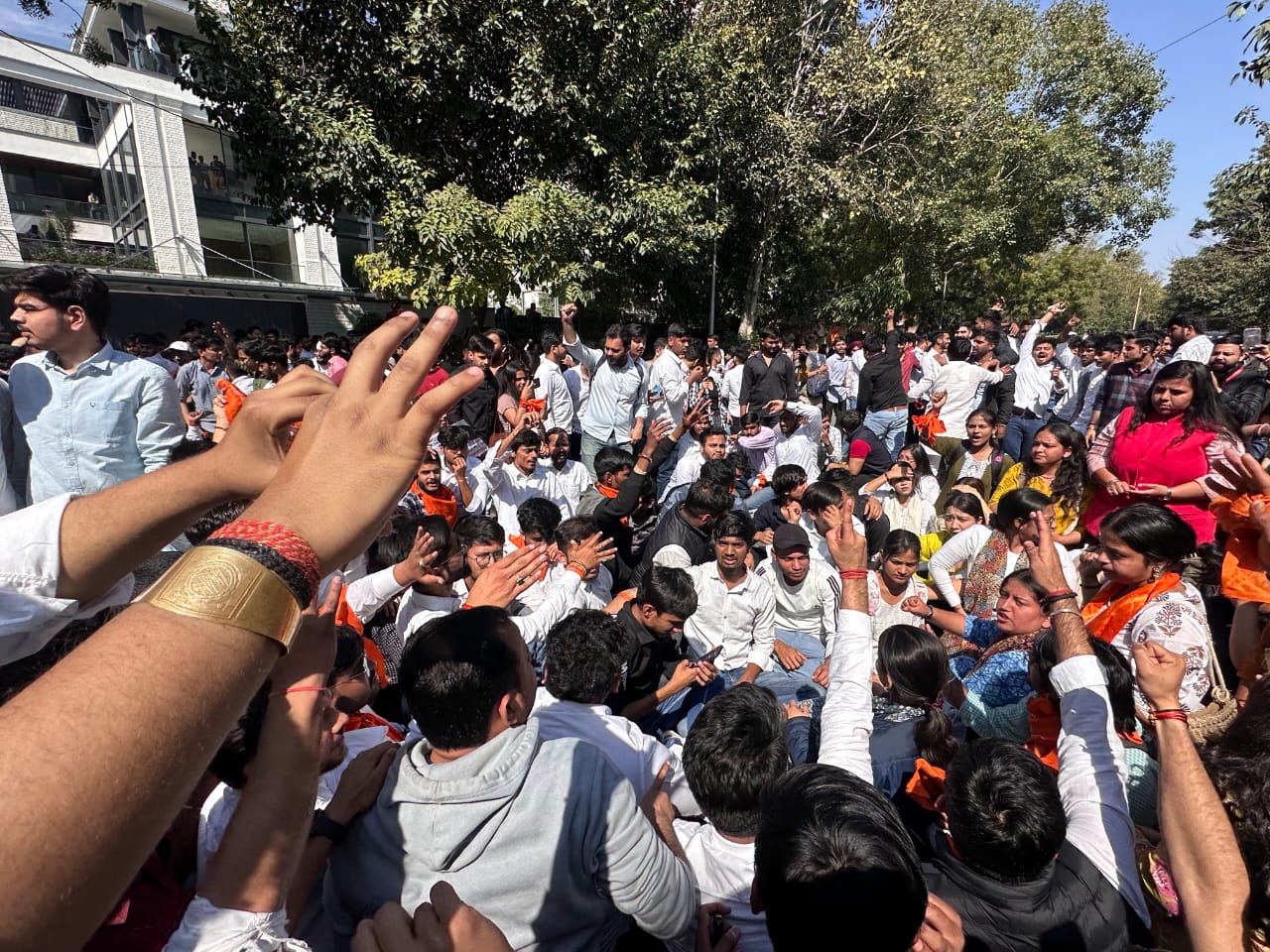 नई दिल्ली: अखिल भारतीय विद्यार्थी परिषद ने मंगलवार को संदेशखाली घटना के विरोध में दिल्ली के बंग भवन पर पश्चिम बंगाल की सरकार के खिलाफ विशाल विरोध प्रदर्शन किया। विद्यार्थी परिषद ने इस घटना में संलिप्त अपराधियों पर जल्द से जल्द सख़्त कार्रवाई करने की मांग की।